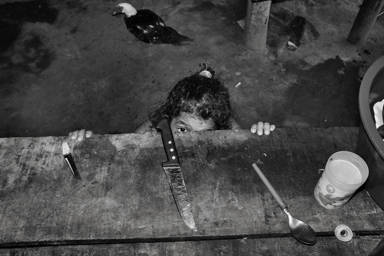 Araribóia, Brasule – Guerdie forestale Guajajara ,che pattugliano la riserva indigena di Araribóia nello stato di Maranhão, picchiano un altro indigeno sospettato di collaborare con i taglialegna illegali. La guardie pattugliano la loro vasta riserva indigena ogni mese, distruggendo i campi dei taglialegna illegali e quando possibile sequestrando le loro attrezzature. A volte li colgono in flagrante, ma può essere pericoloso perché entrambi i gruppi sono armati. A Maranhão e in altri stati brasiliani dell’Amazzonia, la stragrande maggioranza delle uccisioni per conflitti di terre o risorse rimane irrisolta.