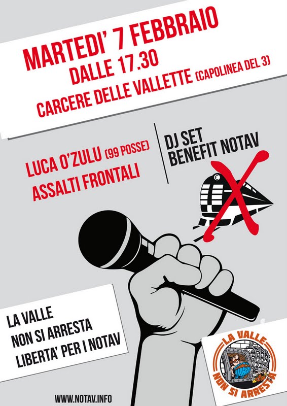 Da sempre a fianco dei movimenti sociali e alle realtà dell’antagonismo, O’Zulù e Militant A, frontman rispettivamente della 99 Posse e degli Assalti Frontali, saranno a Torino martedì pomeriggio-sera per portare un saluto in musica agli/le arrestat* del movimento NoTav rinchiusi al carcere Le Vallette di Torino.