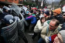 Ore 13:45 Chiomonte: le fdo si posizionano in modo da impedire la partenza del corteo.