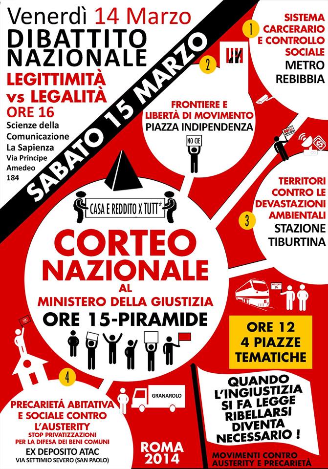 A Roma una due giorni, oggi e domani, per parlare di queste tematiche, venerdì a La Sapienza e sabato un corteo con 4 piazze tematiche (Sistema carcerario e controllo sociale, Frontiere e libertà di movimento, Territori contro le devastazioni ambientali, Precarietà abitativa e sociale contro l’austerity stop privatizzazioni, difendiamo i beni comuni) ed un Corteo Nazionale. Ne parliamo con Paolo, del Coordinamento Lotta per la Casa di Roma: paolo_roma