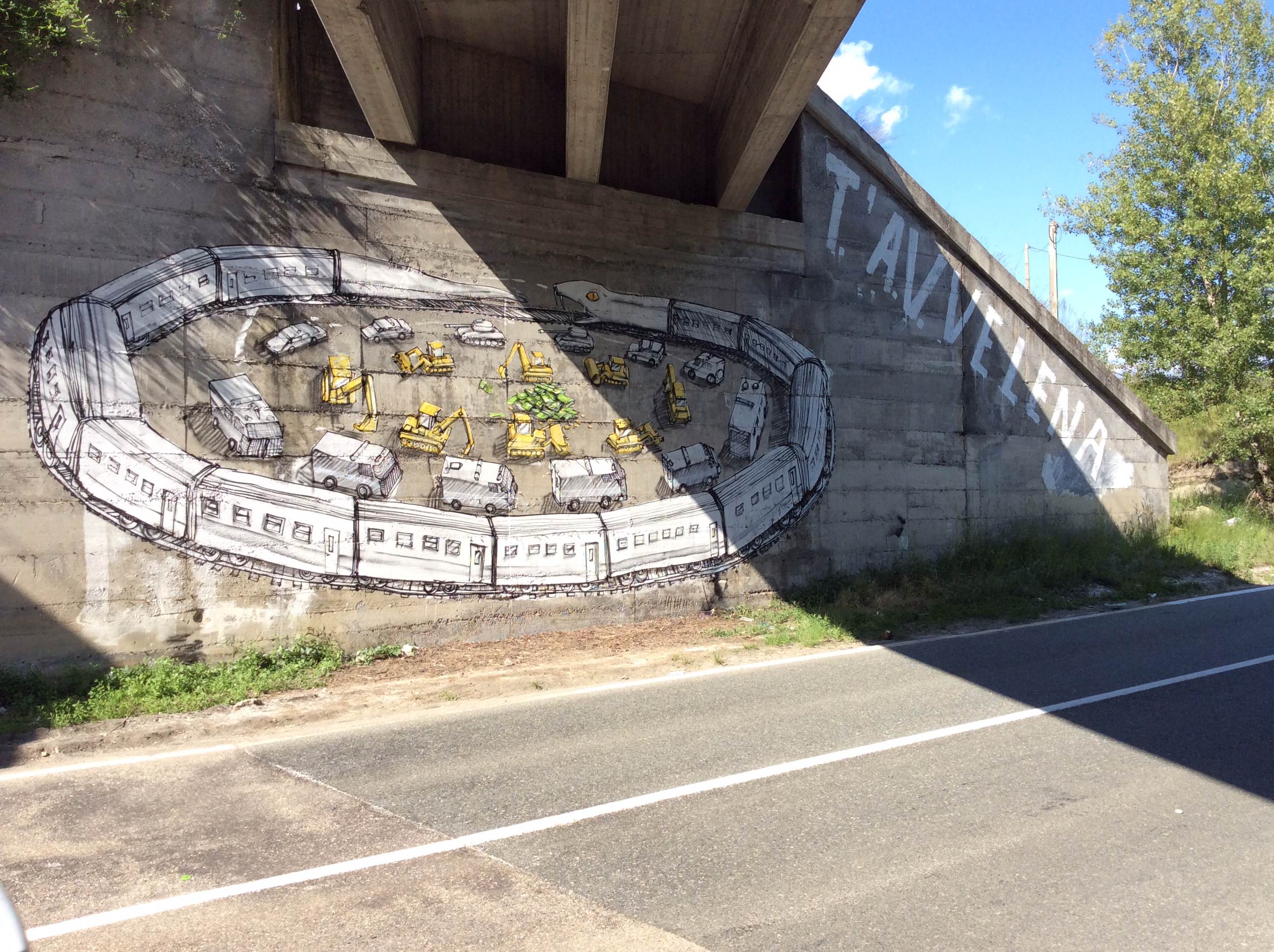 Mentre in tribunale veniva emessa la sentenza di cui ci ha parlato l’avvocato Losco, il movimento No Tav si era dato appuntamento in valle: il programma avrebbe previsto la creazione di un murales nei pressi delal Centrale a Chiomonte, ma le guardie schierate hanno impedito il passaggio dei manifestanti, così il murales ha preso forma e colori sotto un arcata della statale 24: sentiamo il racconto di Giulia: