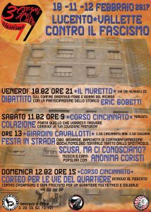 In concomitanza con la giornata nazionalista del ricordo del 10 febbraio, nel quartiere popolare di Lucento-Vallette, periferia nord-ovest di Torino, è stata organizzata una tre giorni contro fascismo e razzismo. In risposta alla probabile apparizione in quei giorni dei fascisti di casapound, ma anche per riportare temi di attualità nei quartieri, dalla lotta per la casa a quella contro le divisioni tra italiani e immigrati etc.