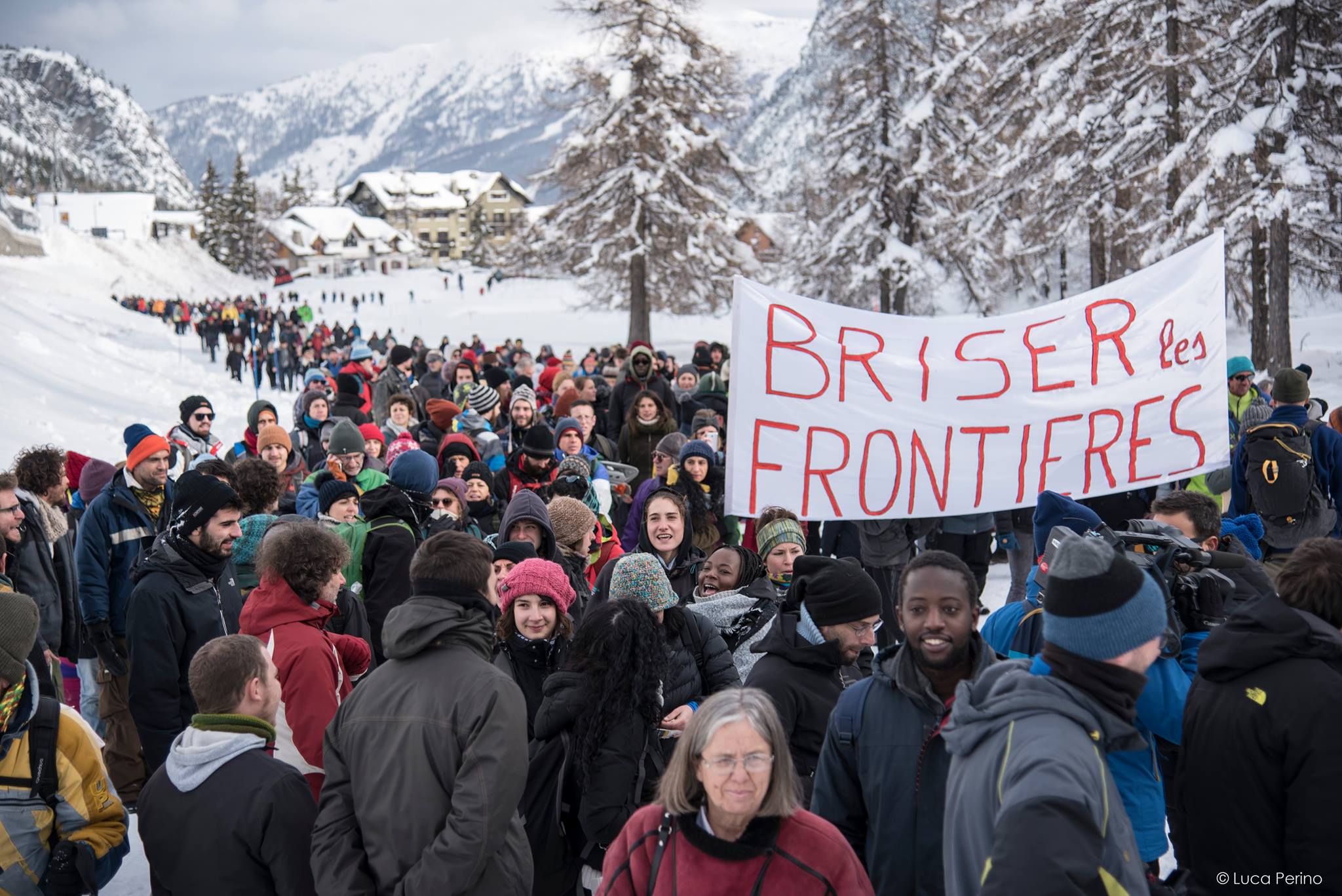 Buona partecipazione alla marcia promossa domenica 14 gennaio dalla rete “Briser les frontieres” sul confine italo francese in Alta Val Susa.