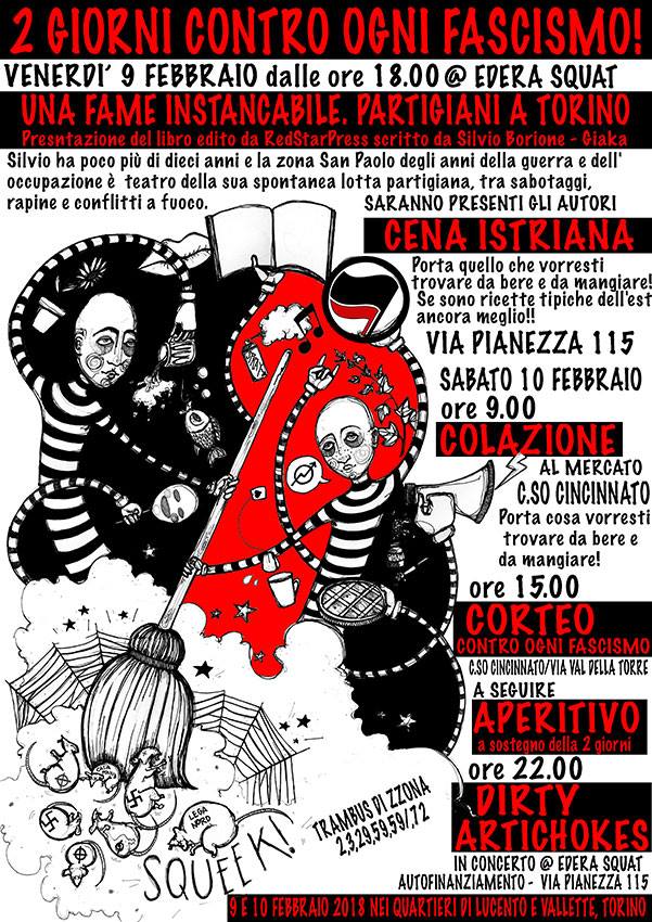 Venerdì 9 febbraio 2018 ore 18.00 @Edera Squat via Pianezza 115, Torino [trambus: 59, 59/,29,3,72]