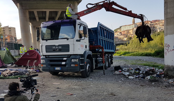 Ventimiglia: è iniziato nelle prime ore di questa mattina lo sgombero del campo di via Tenda, sulle sponde del Roja, dove da oltre 5 mesi vivevano accampati più di 200 migranti, tra cui molte donne e bambini.