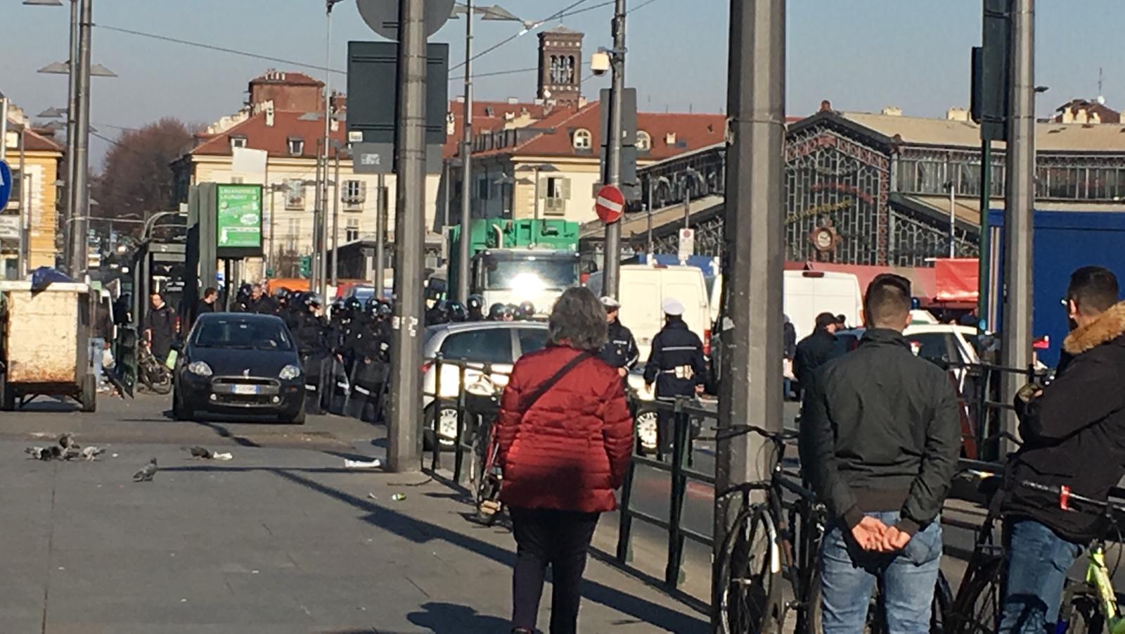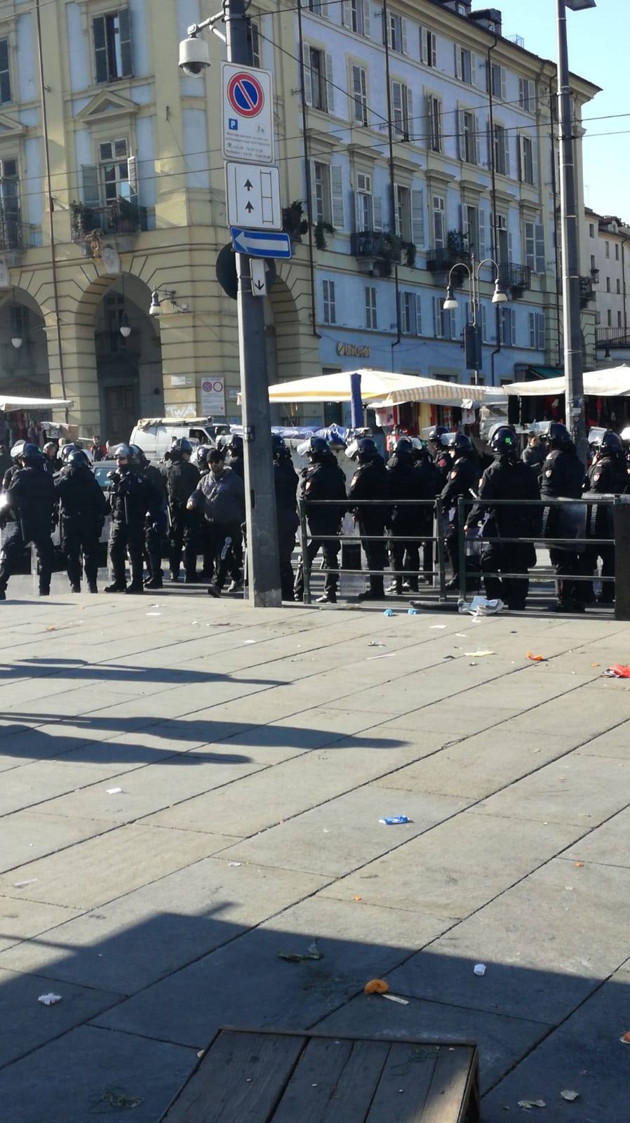 Anche oggi al presidio indetto contro le politiche fasciste della sindaca di Torino ci sono stati notevoli dispiegamenti di polizia.
