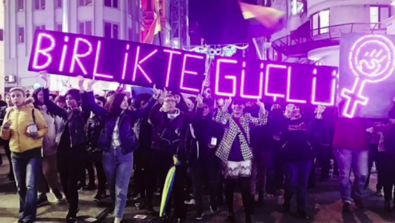 Interessante la sonorità del video selezionato da Murat Cinar: una canzone d’amore curda vivacizzata da un cantante curdo che vive in Canada ed eseguita con un trombonista curdo che abita a Firenze… altrettanto concitata è sta la consueta Marcia notturna dell’Otto marzo con la caccia al partecipante, e alcune trans sono state prelevate dai taxi bloccati dalla polizia. Alla manifestazione poi le studentesse di Boǧaziçi ai domiciliari sono andate ugualmente, evadendo con le cavigliere elettroniche. Come ogni anno sono volate le consuete botte da orbi della sbirraglia e i consueti insulti del presidente. Ma è anche stata la consueta grande manifestazione gioiosa a cui foto e filmati dalla Turchia ci hanno abituato nell’ultimo decennio.
