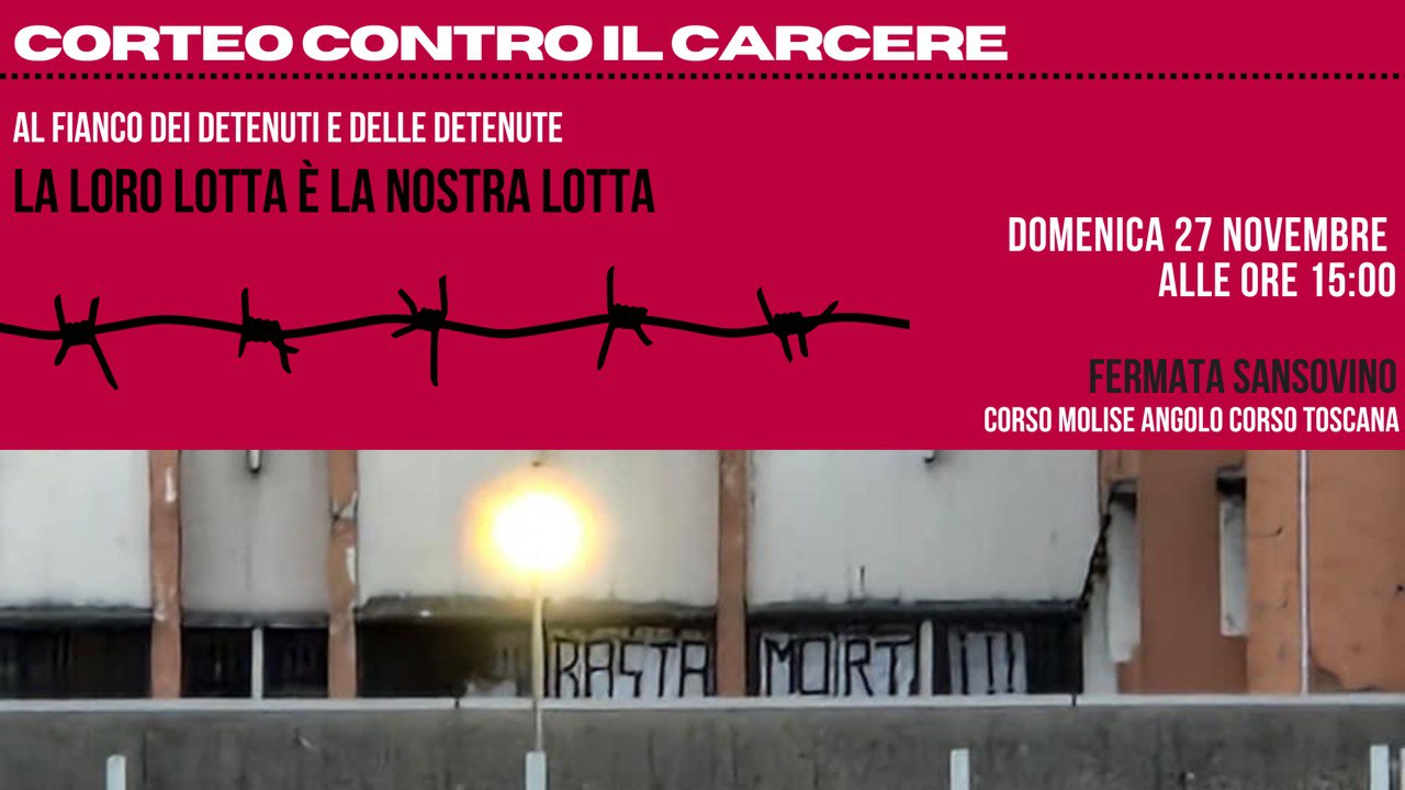 Una situazione che necessita di una presa in carico delle lotte per la libertà e per le condizioni di detenzione più umane anche di chi si trova fuori da quelle maledette mura, facendo nostre le rivendicazioni espresse da detenute e detenuti, portando in strada la loro voce e rendendo visibile ciò che avviene dentro il carcere stesso.
