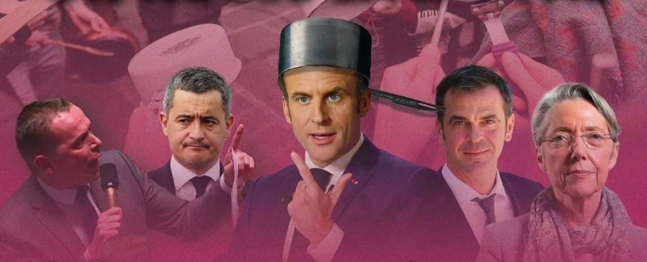 Sicuramente non si ferma. Abbiamo chiesto a una compagna che vive a Parigi di raccontarci qual è stata la reazione delle piazze al discorso di Macron di lunedì scorso, com’è andato il tentativo di dissoluzione di Les Soulèvements de la Terre, e il caso dell’editore francese fermato per terrorismo appena sceso dall’Eurostar mentre si recava per lavoro alla Fiera del Libro di Londra. A partire da queste domande, Irene ci ha restituito un quadro vivido della situazione in Francia e i prossimi appuntamenti: la CGT energie, infatti, parte del grande sindacato Confédération générale du travail, ha annunciato «100 giorni di azione», in risposta ai 100 giorni di pacificazione che Macron ha promesso in seguito alla riforma, da qui alla festa che commemora la Rivoluzione francese. Già mentre pronunciava queste parole, nella serata del 17 aprile, migliaia di francesi sono scesi in piazza a fare baccano con pentole e mestoli, espressione di dissenso che si sta moltiplicando in tutte le città in cui membri del governo abbiano il coraggio di andare in visita. Tutto ciò, mentre la segretaria del sindacato CGT, Sophie Binet, ha annunciato una storica giornata di mobilitazione proprio per il 1° maggio.
