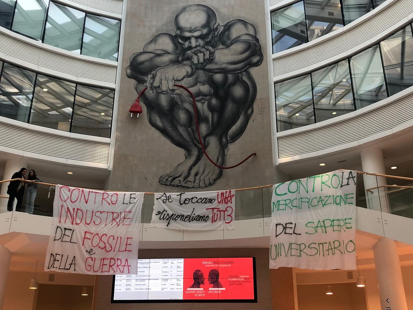 Domani si terrà l’ultimo tavolo dell’occupazione torinese, in cui incontreranno le NO TAV per rilanciare la giornata dell’8 dicembre in val di Susa. L’occupazione al campus Einaudi prosegue anche nelle prossime settimane, mantenendo un’area nella main hall in cui reperire materiale informativo sulla campagna di End Fossil, stabilire alleanze, continuare la lotta.