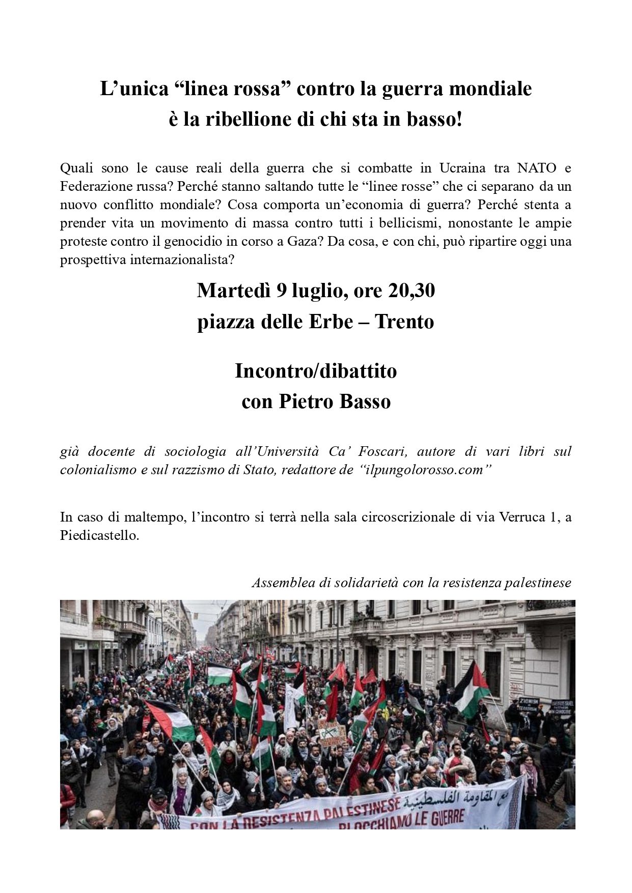 Trento 9/07/24 – L’unica “linea rossa” contro la guerra mondiale è la ribellione di chi sta in basso