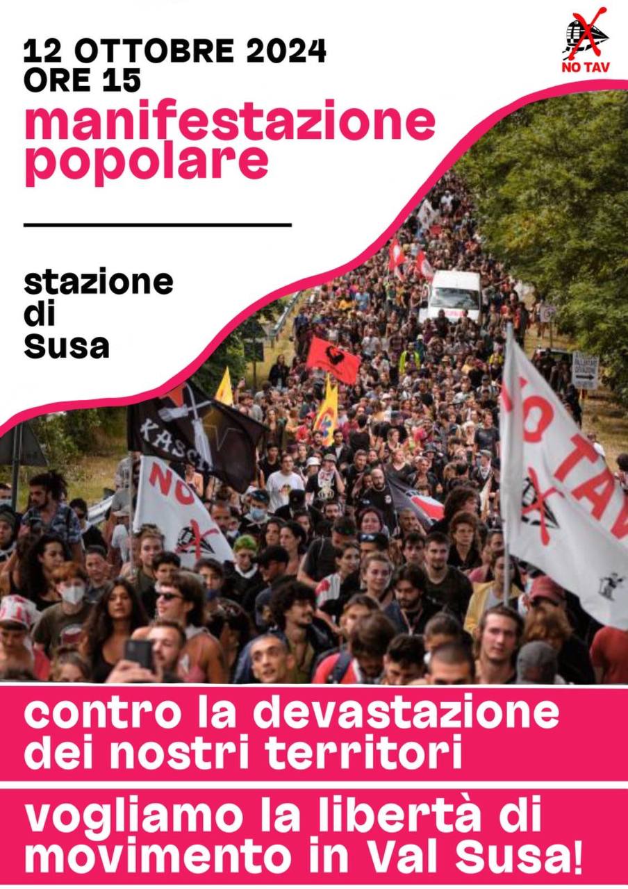 A seguito dello sgombero e la presa di possesso dei terreni di San Giuliano avvenuto nella notte tra domenica 6 e lunedì 7 ottobre, il Movimento No Tav ha chiamato a una conferenza stampa per lanciare una manifestazione popolare per sabato 12 ottobre alle ore 15 in partenza dalla stazione di Susa e a un appuntamento fisso alle 18.30 di ogni giorno per monitorare e essere presenti sul luogo dove verranno convocate le persone che devono ricevere l’esproprio.
