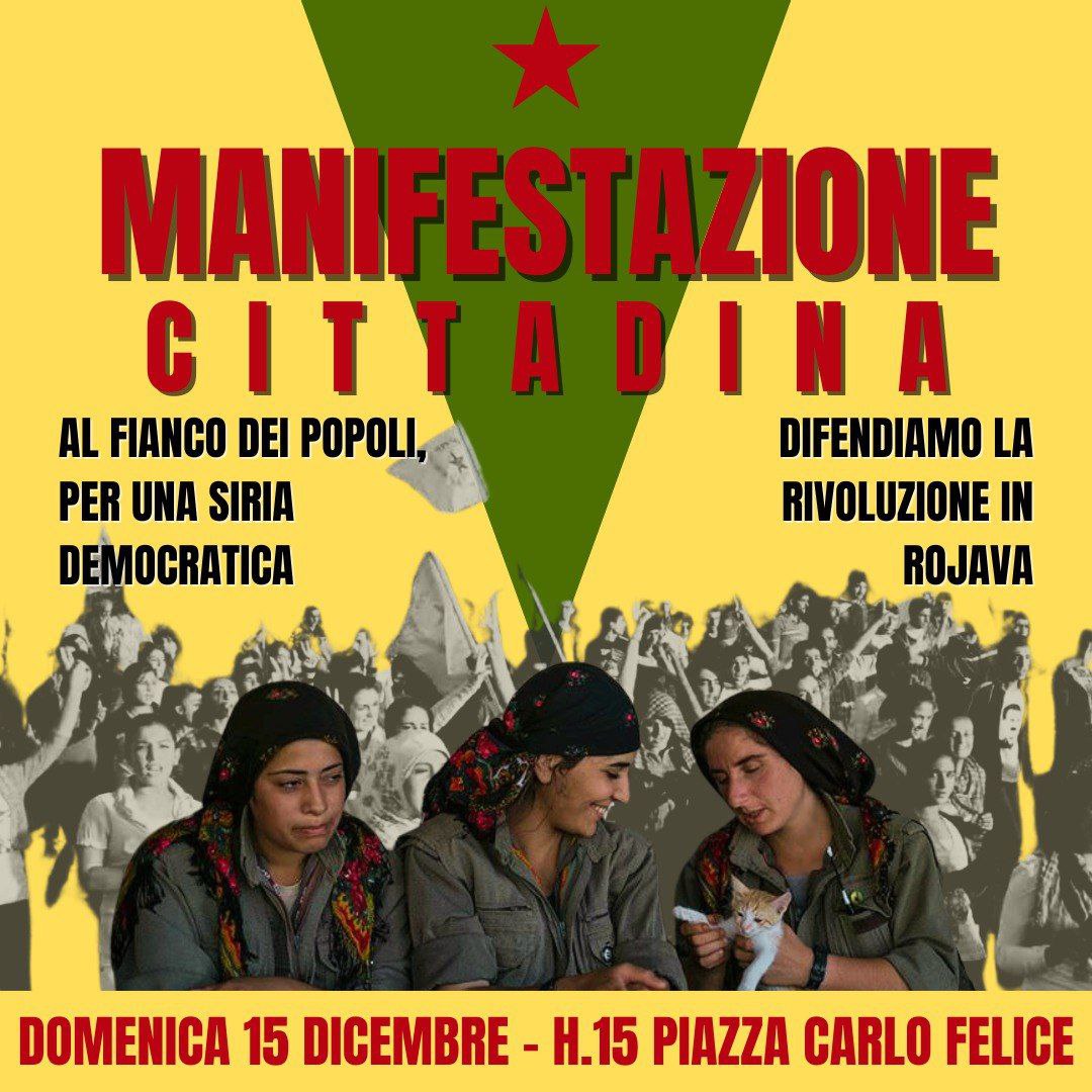 A Torino domenica 15 Defend Rojava ha lanciato un corteo per la fine dei bombardamenti turchi in Siria del nord. Appuntamento alle 15 in piazza Carlo Felice