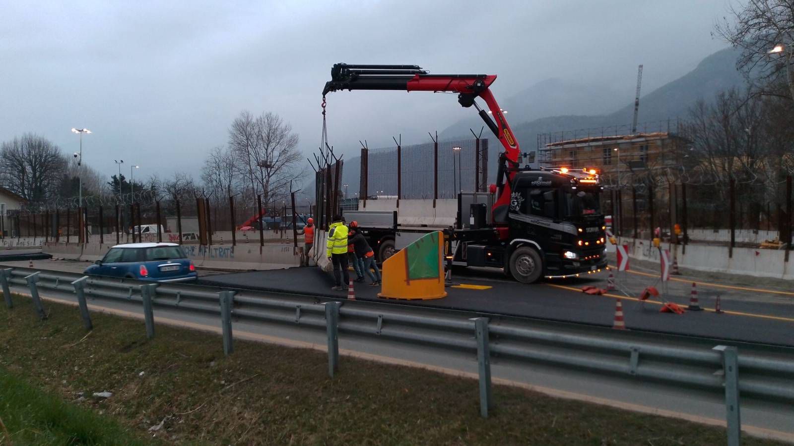 Sono già stati posizionati nuovi jersey lungo la statale 25, creando non poche difficoltà per il traffico della valle, e si intuisce che il lavoro potrà inglobare parte del piazzale antistante il presidio che, ricordiamo essere stato sequestrato a seguito di un’operazione portata avanti dalla Questura di Torino lo scorso anno.