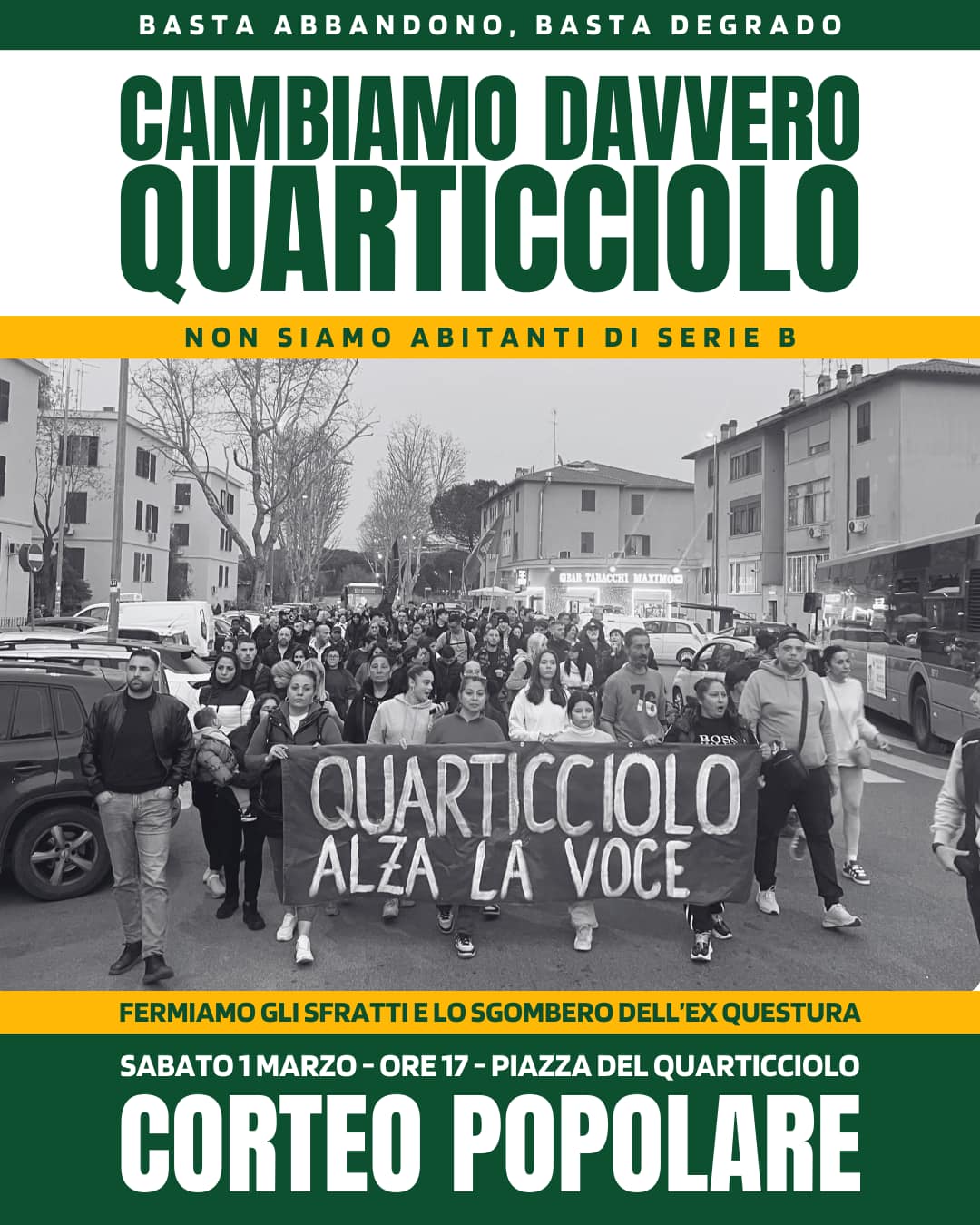 Sabato 1 marzo corteo popolare al Quarticciolo!