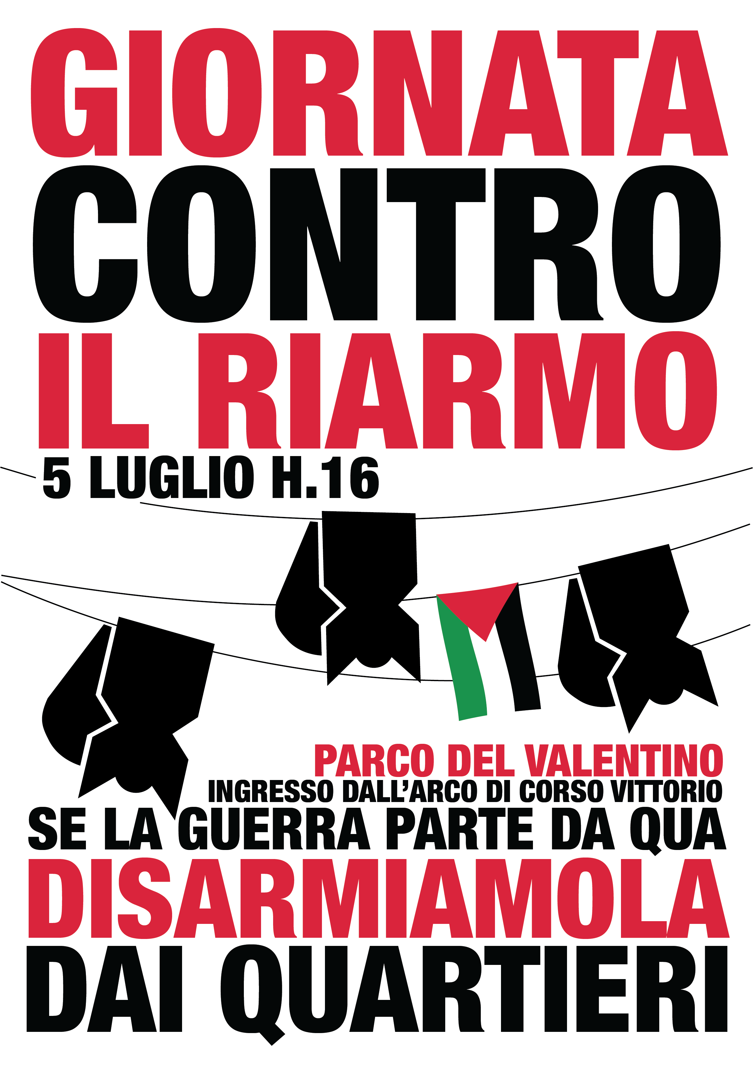 Stop riarmo: sabato 5 luglio giornata di iniziative a Torino