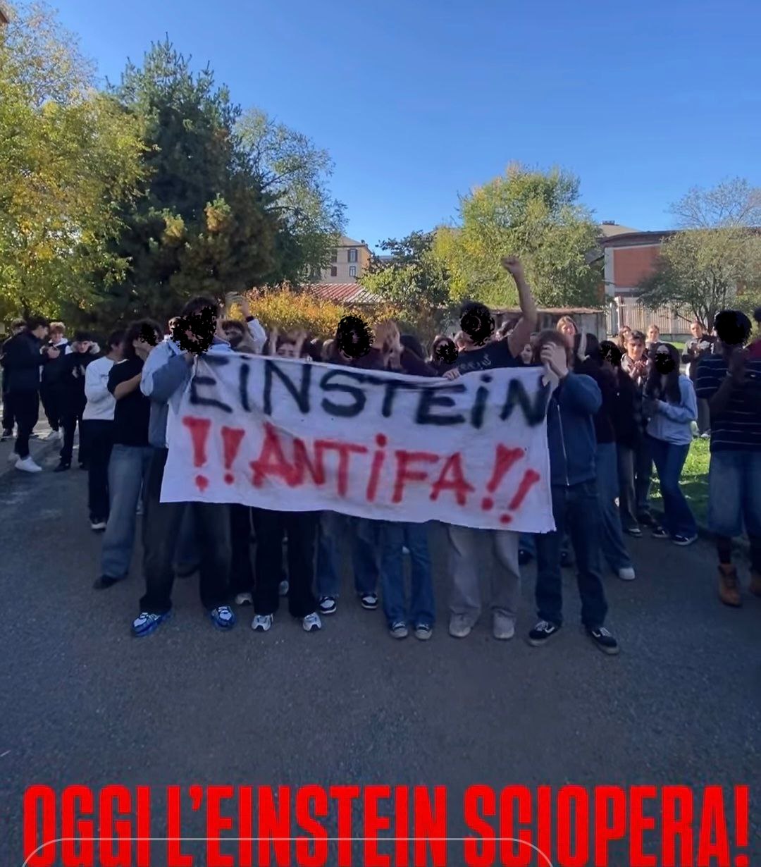 Nonostante i tentativi della presidenza di far svolgere le lezioni come se nulla fosse dopo le cariche la mattina all’ingresso dell’Einstein e il fermo di un ragazzo minorenne, prelevato da scuola e portato alla Questura di Via Grattoni in manette, lə studentə di tutte le sedi del liceo Einstein hanno bloccato la didattica e si sono riunitə in assemblea.