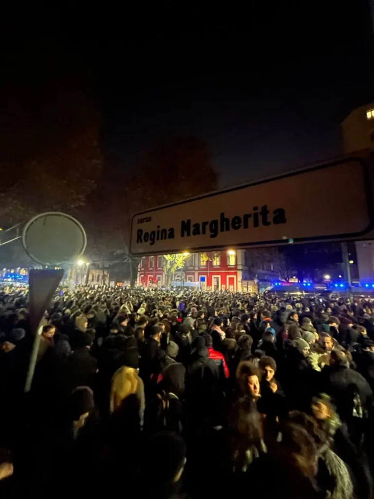 Già alle 18:30 si contano molte centinaia di persone radunatesi ai piedi dello stabile di Corso Regina.