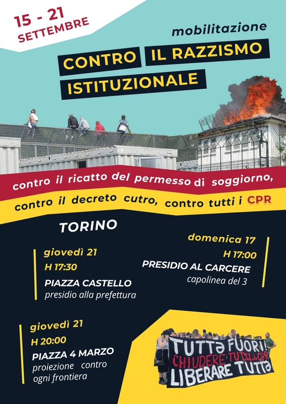 CONTINUIAMO LA MOBILITAZIONE CONTRO LA RIAPERTURA DEL CPR DI TORINO.