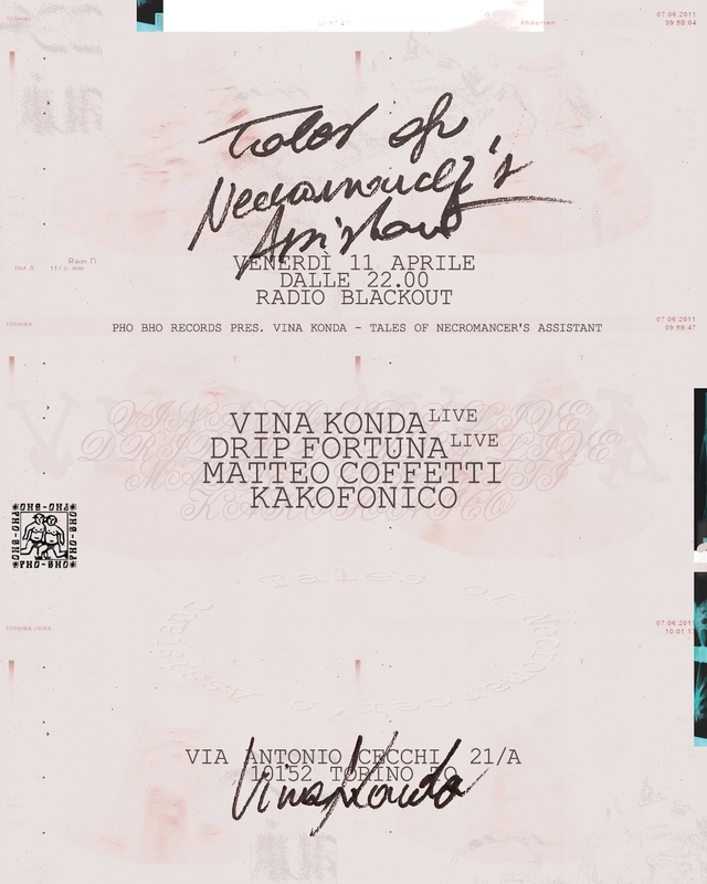 Venerdì 11 Marzo dalle 22 ||| 🕸️🕸️ Pho Bho Records presenta il nuovo album di Vina Konda "Tales of Necromancer's assistant" w/ Vina Konda (live), DRIP FORTUNA (live), Matteo Coffetti e Kakofonico 🕸️🕸️"Tales of Necromancer's Assistant" è un'esplorazione epica e strisciante di noise, bass e metal. In questo secondo album, Vina Konda offre un viaggio caotico attraverso una fiaba oscura, che potrebbe essere proprio quella in cui stiamo vivendo.