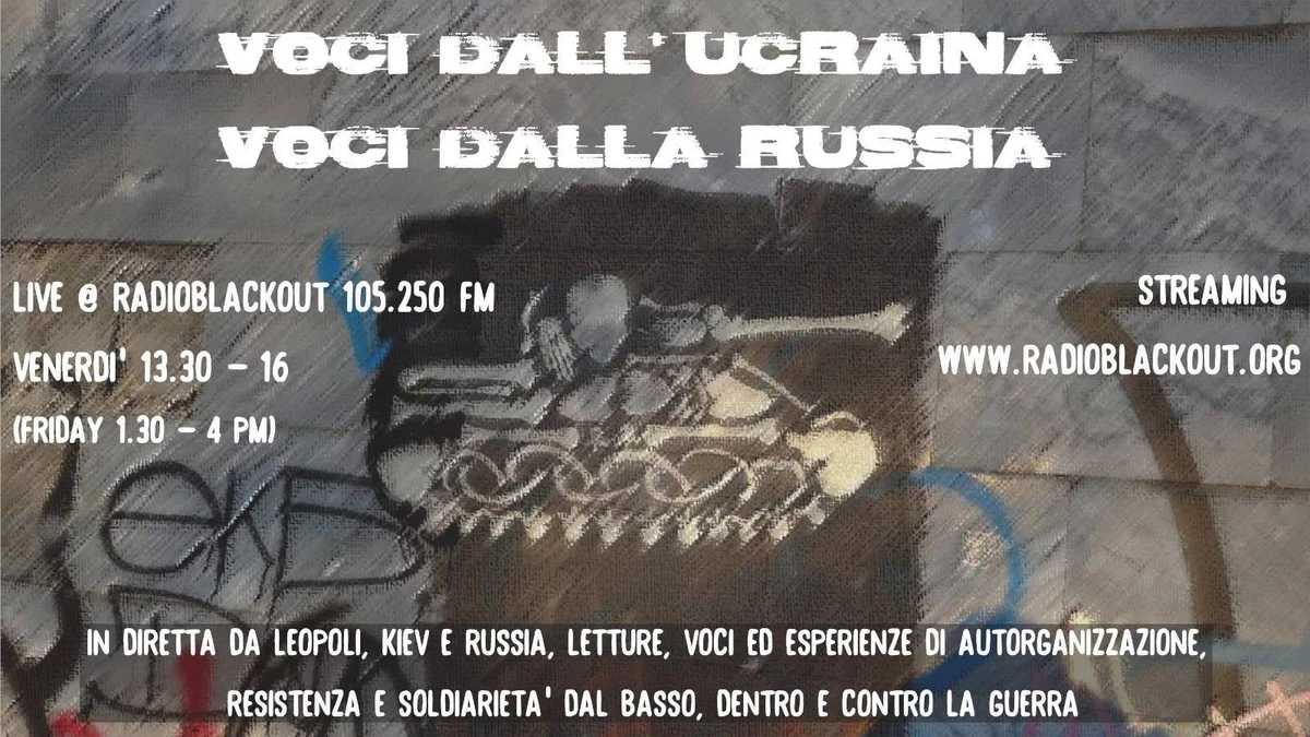 Qui, in questo approfondimento speciale di Radio Blackout, cercheremo di dare spazio a riflessioni ed esperienze di resistenza, lotta, autorganizzazione e mutualismo dall’Ucraina alla Russia, passando per i confini Polacchi