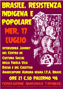 Incontro sul Brasile con Johnny do Centro de Cultura Social da Favela Vila Dalva e del Coletivo Anarcopunk Aurora Negra / I.F.A. Brasil