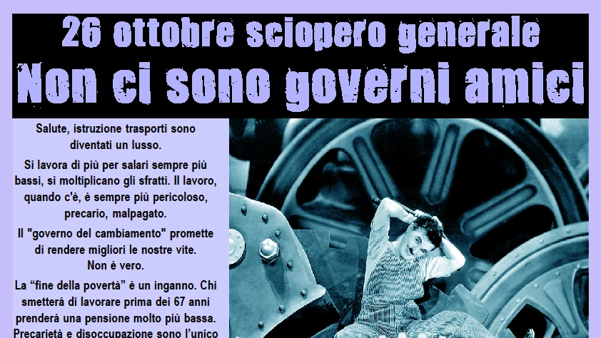 Mercoledì 17 ottobre. Volantinaggio e punto info sullo sciopero generale del 26 ottobre a Palazzo Nuovo. Dalle 9,30 alle 12