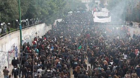 Nella mattinata del 12 gennaio si è svolta una grande manifestazione anarchica nel centro di Atene in difesa degli spazi occupati e per la liberazione dei compagni arrestati il mercoledì precedente dopo la rioccupazione di Villa Amalias e il nuovo sgombero dello squat.