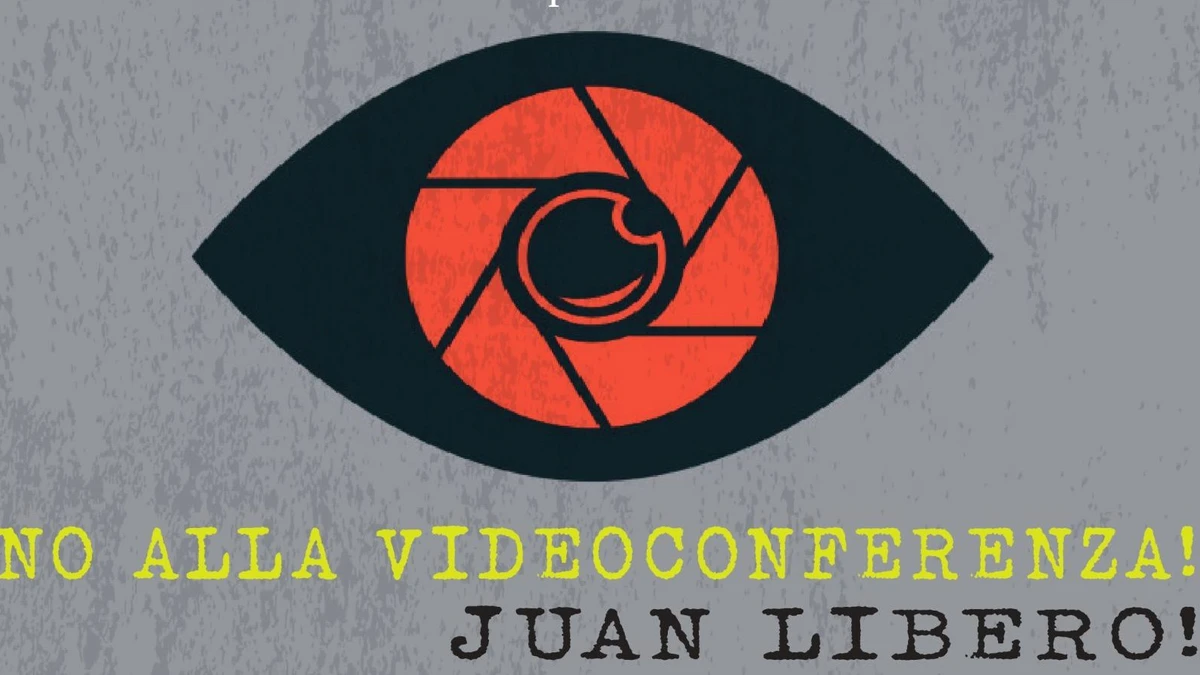 Ci colleghiamo con un presidio in corso davanti a un tribunale dove non è presente l’imputato, ridotto a dei pixel su uno schermo e a una voce che può essere silenziata elettronicamente da un giudice: