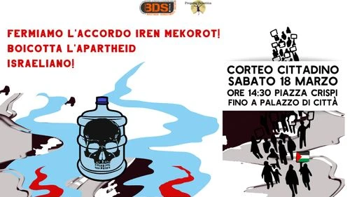 il 10 gennaio 2013 è stato firmato l’accordo tra la multi-utily Iren e la società idrica israeliana Mekorot. Società che in piena sincronia con la politica segregazionista del governo israeliano collabora all’apartheid palestinese attraverso il controllo, la vendita e la distribuzione dell’acqua. Questa società gonfia i prezzi delle forniture ai territori palestinesi o li lascia a secco in caso di siccità o come attacco politico.