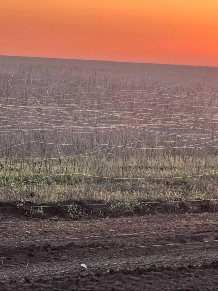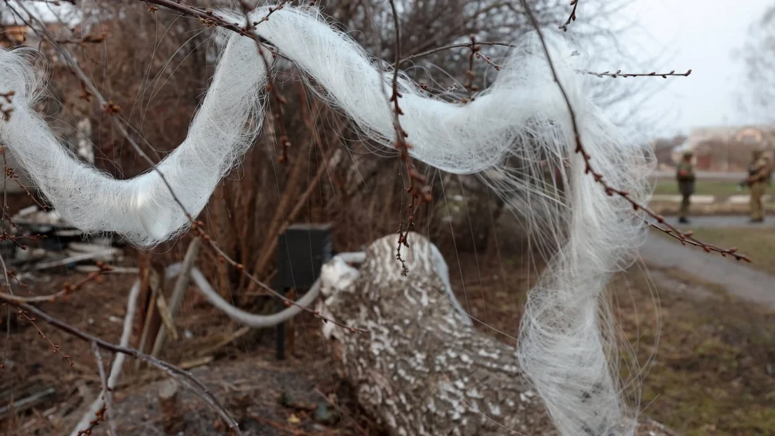 Campi ricoperti di fibra ottica lasciati dai droni nella guerra tra Russia e Ucraina