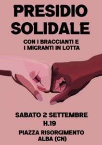 Il terzo approfondimento lo abbiamo fatto grazie ad un collegamento in diretta radio fatto ad hoc per l’occasione di un presidio di braccianti ad Alba il 2 Settembre. Grazie a questo contributo ci siamo fatti aggiornare sulle evoluzioni delle lotte nelle campagne, che vediamo plasmarsi da territorio a territorio, ognuno con le sue regole di ingaggio per i lavoratori. Che da una parte vengono reclutati in un parco pubblico, dall’altra delle cooperative (caporali?) che tolgono questo lavoro sporco al padrone ma vanno ad incidere sul guadagno di chi quelle ore se le suda nei campi. Tema centrale ed urgente che hanno portato i lavoratori in piazza è stato quello della casa, nella loro condizione di lavoratori migranti rimangono esclusi da un meccanismo di accoglienza che sembra studiato per non funzionare, buttati fuori da una struttura della Caritas in attesa di restauri della stessa e senza alternativa, avevano deciso di occupare per poi essere sgomberati. Il compagno in collegamento dal presidio di Alba ci ha raccontato del presidio che si stava iniziando a formare, con la partecipazione attiva di singole persone del territorio e realtà organizzate che si sono attivate in questo ambito, ovvero il Collettivo Mononoke e NUDM.