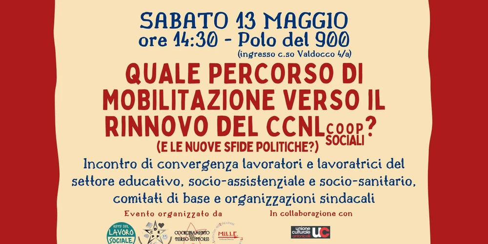 Il primo approfondimento lo abbiamo fatto in compagnia di Leo, lavoratore del terzo settore aderente alla rete Lavoro Sociale e Dario Fontana, ricercatore in sociologia del Lavoro presso il servizio di Epidemiologia Piemonte ASL TO3, sull’incontro di convergenza di lavorator* del settore educativo, socio-assistenziale e socio-sanitario, con comitati di base e organizzazioni sindacali che si terrà in corso Valdocco 4/A a Torino sabato 13 maggio 2023 alle ore 14.30.