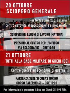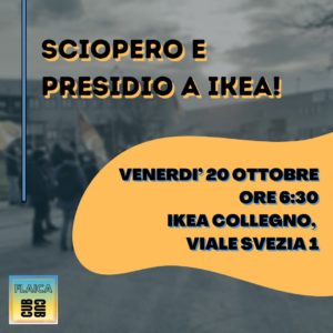 La CUB invita a sostenere lo sciopero contro l’avidità delle grandi multinazionali e contro la distruzione dei diritti del lavoro ed invita tutt* a partecipare il 20/10 a IKEA COLLEGNO (VIALE SVEZIA 1) e/o al presidio davanti al Palazzo della Regione a Torino, ore 10-12.30.