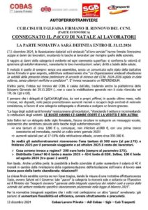 L’11 dicembre 2024 viene raggiunta l’intesa per la parte economica del nuovo CCNL Autoferrotranvieri da parte dei sindacati confederali CGIL, CISL, UIL e UGLFaisa con le controparti datoriali. I sindacati di base denunciano la mancanza di una piattaforma condivisa e la segretezza delle trattative di rinnovo.