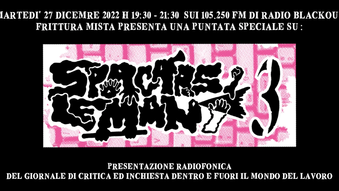 Abbiamo voluto dedicare interamente la nostra puntata di questa sera all’ultimo numero, il 3, della rivista Sporcarsi le mani. Pubblicazione redatta dall’Assemblea Lotte Lavoro di cui avevamo già parlato precedentemente in questo programma e che abbiamo voluto usare per sganciarci un po’ dalla cronaca, dalle lotte presenti e attive sul territorio, per prenderci un momento di bilancio grazie alla varietà di articoli presenti in questo numero. Di seguito troverete gli audio dei ben sette interventi che si sono succeduti, titolati con il nome dell’articolo a cui fanno riferimento sul giornale. Ovviamente vi invitiamo caldamente a procurarvi questo numero di Sporcarsi le mani, che al momento è disponibile in versione cartacea presso: