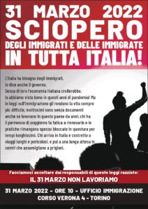 Qui a Torino, l’appuntamento è per il 31 Marzo alle h 10 davanti all’ufficio immigrazione della Questura in c.so Verona 4, vi invitiamo a partecipare numerose e numerosi.