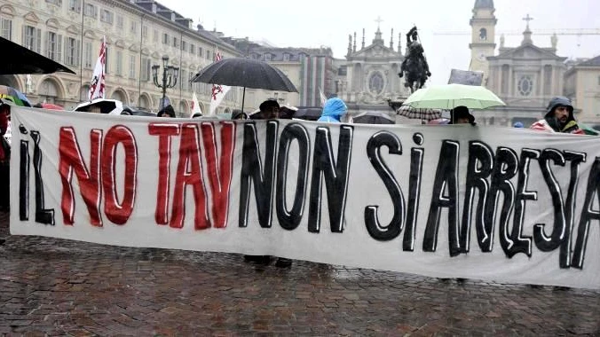 I No Tav, nonostante la giornata da lupi, si sono raccolti in molte migliaia in piazza Carlo Felice.