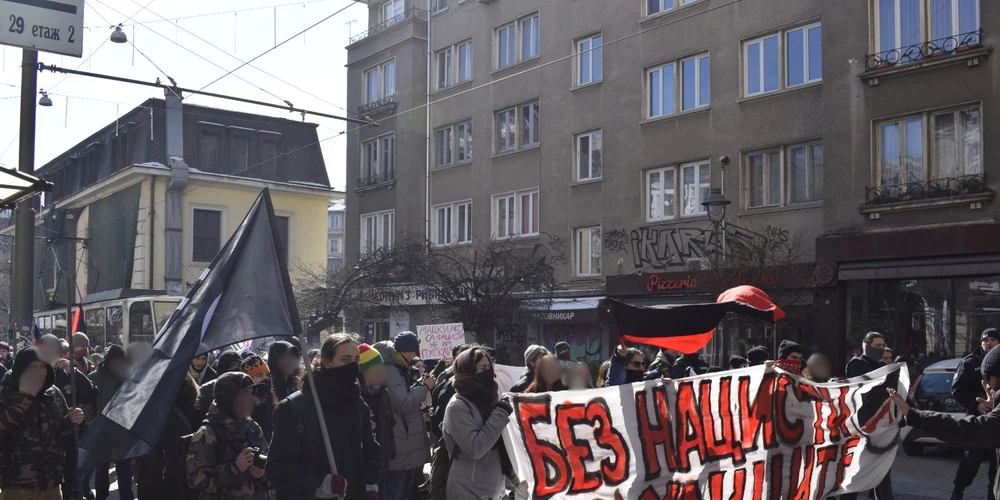 La Bulgaria è la frontiera sudorientale dell’Europa con la Turchia: un confine su cui politica bulgara ed europea costruiscono da anni la loro propaganda anti-immigrati per legittimare la militarizzazione e i tagli al welfare, e su cui marciano sia nuovi partiti di estrema destra, populisti e filo-russi, sia le organizzazioni neonaziste extra-partitiche. Nell’ultimo anno a Sofia, abbiamo assistito a marce anti-immigrati organizzate da rappresentanti della politica istituzionale e capeggiati da gruppi di ultras neonazi, così come a frequenti aggressioni per le strade e campagne di propaganda razzista e omotransfobica. I neonazi si prendono gli spazi lasciati vuoti dalla politica e dai servizi assenti: le organizzazioni giovanili “patriottiche” sono nelle scuole, nelle palestre e negli stadi. Spesso gli aggressori sono (appositamente) minorenni, mentre più in alto nella scala gerarchica sta chi da anni collabora con polizia, politica e mafia nel traffico della droga e nelle provocazioni nei movimenti di piazza più grandi. In mezzo al fascismo che avanza su tutti i fronti, lx compagnx antifascistx organizzano ogni anno un corteo chiamato “No ai nazisti nelle nostre strade” (in foto), in risposta alla marcia neonazista in onore del generale Hristo Lukov. Quest’anno le mobilitazioni antifasciste e antirazziste non sono mancate e sono state occasioni di intreccio tra le lotte in solidarietà ai reclusi nei cpr e nei centri di accoglienza bulgari, la lotta per la libertà di movimento al confine con la Turchia, le lotte transfemministe e il movimento di solidarietà con la resistenza palestinese e quella curda.