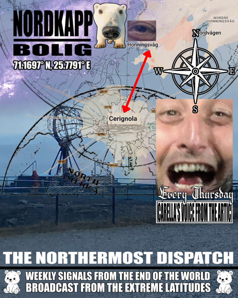 A partire da questa sera, e per ciascun giovedì a venire nell’arco di sei mesi, saremo chiamati a testimoniare—con attenzione e in tempo reale—l’impresa singolare del Signor Francesco Carella, intento a raggiungere le più remote propaggini dell’estremo polare.