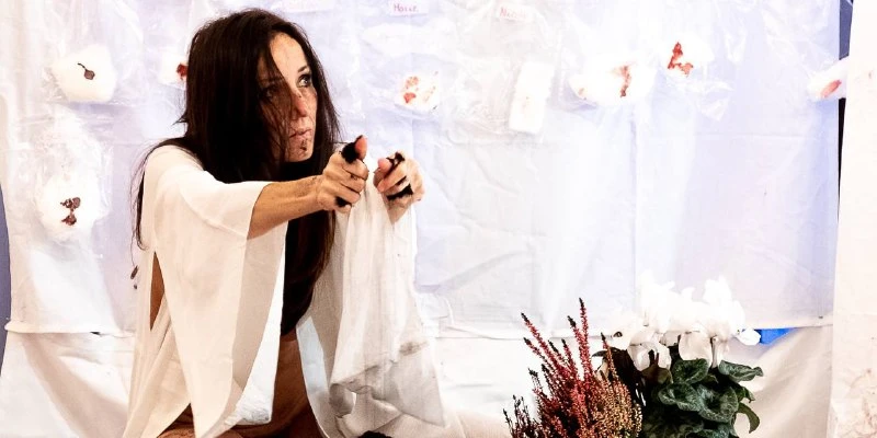 Paola Daniele è un’artista e attivista che pone i corpi al centro della sua ricerca, utilizzandoli come strumenti di espressione politica e poetica. Il suo lavoro esplora la relazione tra femminilità, sangue e tabù culturali, utilizzando il sangue mestruale nelle sue performance e installazioni per sfidare le norme patriarcali e rinegoziare il significato simbolico dei corpi femminili.