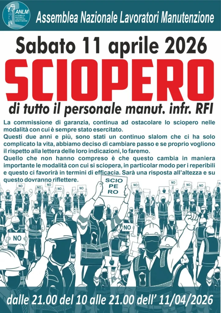 Il terzo approfondimento lo abbiamo fatto in compagnia di Alberto Russo dell’ ANLM (Assemblea Nazionale Lavoratori Manutenzione) manutentore che lavora in RFI (Rete Ferroviaria Italiana) sullo sciopero di 24h previsto per l’11/04/2026 e sul comunicato che l’assemblea sta facendo circolare su “Se proprio vogliamo giocare giochiamo”.