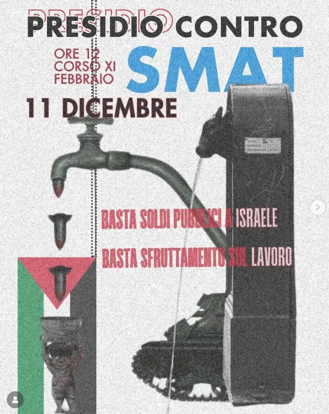 Il primo approfondimento della serata lo abbiamo fatto in compagnia di Rocco di CO.L.P.O., collettivo che si occupa di auto difesa sui posti di lavoro, con uno sportello di consulenza settimanale aperto a Barriera di Milano a Torino. Ed è proprio dal loro lavoro di raccolta di testimonianze sul territorio che arriva questa storia, come spesso succede parliamo di una piccola azienda la AeG riscossioni che lavora per SMAT società di gestione delle acque a livello regionale piemontese, che agisce in maniera criminale e sfrontata nei confronti di chi ci lavora, come tante sue simili sul mercato. I dipendenti raccontano di modalità contrattuali di fatto simili al cottimo, e che erano da poco ulteriormente peggiorate innalzando il numero base di contatori installati al giorno, accordo avvenuto alle loro spalle. E poi furgoni dati in dotazione con parcheggio a carico dei lavoratori stessi, mobbing, mancanza di materiale da lavoro adeguato e divise per essere riconosciuti (molti sono i stati i casi in cui è stato impossibile lavorare a causa della diffidenza degli inquilini che non si fidavano ad aprire agli installatori che non potevano provare di lavorare per SMAT). Ciliegina sulla torta, alla fine del contratto a tempo determinato alcuni installatori si vedono sotratte le ultime due buste paga. Tutto questo e molto altro, ha portato alla vertenza di questi lavoratori contro AeG, ma anche quelli di COLPO a scoprire che i contatori stessi di cui stiamo parlando sono stati prodotti dalla Watertech, azienda Israeliana che si è macchiata delle peggiori nefandezze durante il genocidio a Gaza. Perciò assieme a Torino per Gaza e altre realtà solidali, è stato lanciato un presidio per giovedì 11 Dicembre alle h 12 in C.so XI Febbraio a Torino, davanti alla sede della Smat, per chiedere che la si finisca con gli appalti dati in mano ad aziende come la AeG, la restituzione degli stipendi ai lavoratori e la fine dei rapporti con Israele.