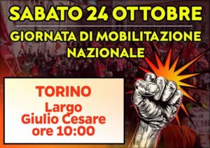IL 24 OTTOBRE MANIFESTAZIONE IN LARGO GIULIO CESARE (CORSO GIULIO CESARE, ANG. CORSO PALERMO) h 10 – TORINO