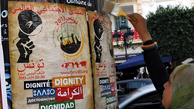 Questi i prodromi di un Forum che si contraddistingue per l’asfissiante presenza del regime ennhadista (sempre più odiato dalla popolazione) e la disperazione di una situazione economica e sociale contraddistinta da crisi economica e repressione poliziesca. Forte, come contraddizione politica che entra anche dentro i lavori del Forum, lo scontro sui percorsi di liberazione femminili.