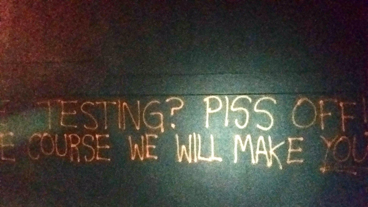 La retorica della lotta alla droga è solo uno strumento di controllo, sia degli individui, sia per la società intera. Permette di militarizzare le strade, schedare e raccogliere di dati fisici delle persone e genera ancor più detenuti per le prigioni private, nuovi avamposti per lavoratori a basso costo e sperimentazione medica. La risposta dei Disoccupati Anarchici Tossicodipendenti di Brisbane non ha tardato a farsi sentire: la sede dell’Indue Institute è stata vergata da scritte e il giardinetto antistante all’edificio cosparso di siringhe e aghi senza cappuccio.