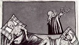 Le campane non suonavano più e nessuno piangeva. L’unica cosa che si faceva era aspettare la morte, chi, ormai pazzo, guardando fisso nel vuoto, chi sgranando il rosario, altri abbandonandosi ai vizi peggiori. Molti dicevano: “È la fine del mondo!”