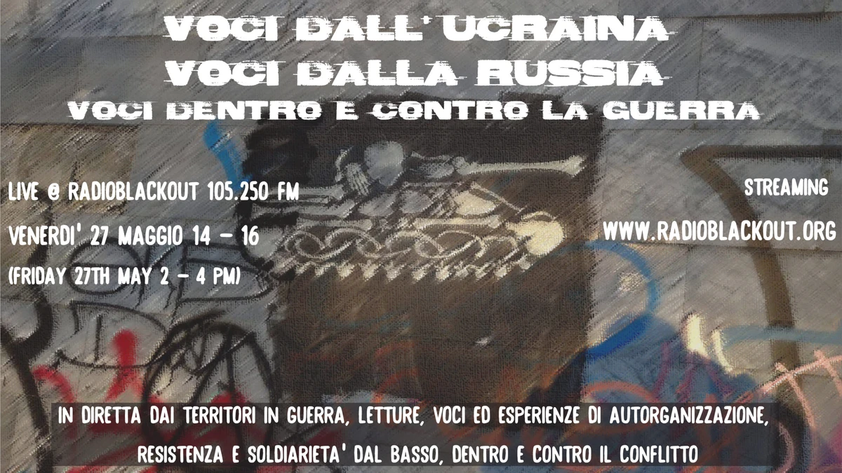 Due le dirette principali di oggi; una con Vitaliy Dudin, dell’organizzazione socialista democratica ucraina Sotsyalnyi Rukh (“Movimento sociale”), a partire dalla nuova legge sul lavoro promulgata dal governo Zelensky in tempi di legge marziale, che è una dichiarazione di “guerra” contro le lavoratrici e lavoratori, dalla semplificazione dei licenziamenti in contesti anche di malattia o congedo alla settimana lavorativa di 60 ore; l’altra con un gruppo di compagn* anarchich* di Perm, una cittadina nel centro della Russia, che ci raccontano quali sono le condizioni di vita e di lotta da parte dei movimenti russi contro la guerra, e che ci fanno un punto sulle varie azioni di sabotaggio contro il governo Putin e gli apparati o simboli statali, toccando anche il dolente tasto della repressione e delle decine di compagn* incarcerate dentro le prigioni russe, e di come supportarle.
